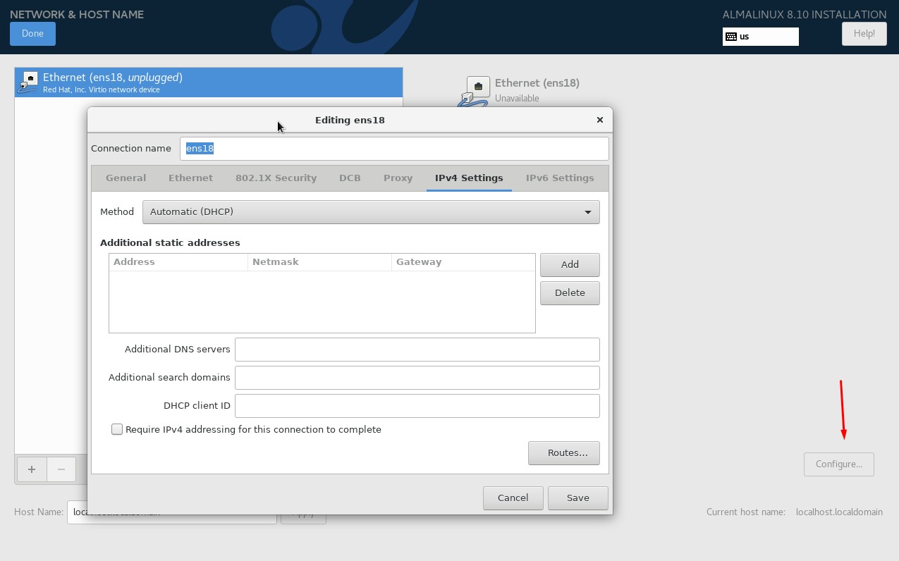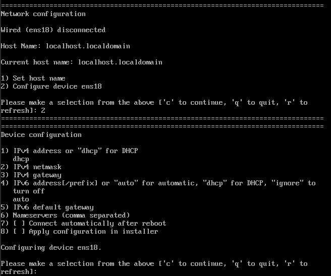 on the keyboard to configure the network. You can choose STATIC or DHCP configuration, or if you are confused, you can configure it later when it is installed.