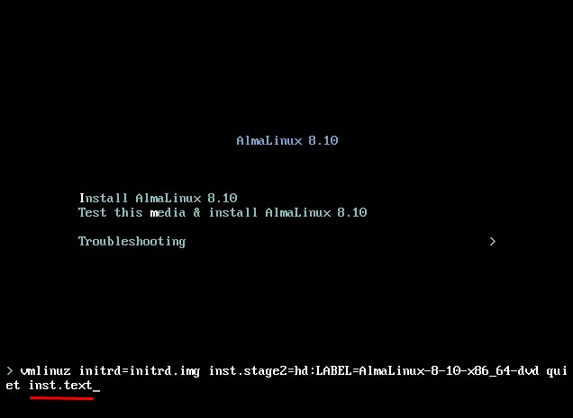 Unfortunately, in some situations, remote installations like this often have problems, especially with the connection from the client to the server when uploading ISO files. This can be caused by very slow network speeds. In the AlmaLinux installation mechanism, there are timeout settings that are important to note. By default, the AlmaLinux image initialization process has a timeout of about 60 seconds. If the image initialization process exceeds this time, AlmaLinux will automatically switch to Command Line Interface (CLI) or Text Based installation mode. This step is taken to avoid the risk of installation failure, taking into account that a slow connection can cause further problems in the installation process.