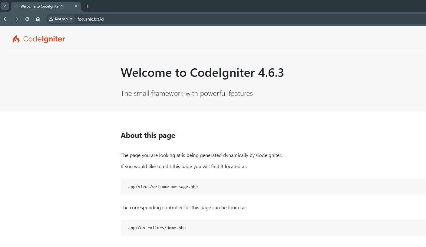 Access the CodeIgniter installation through a browser, for example: http://focusnic.biz.id