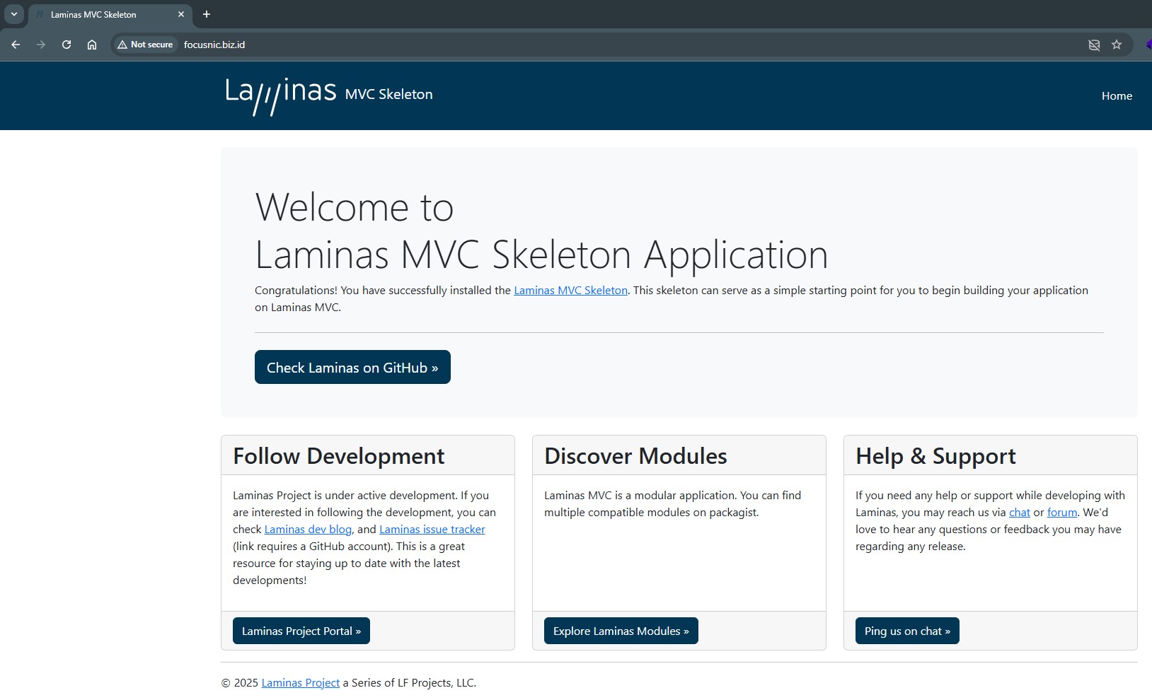 Access the Laminas installation via a browser, for example: http://focusnic.biz.id