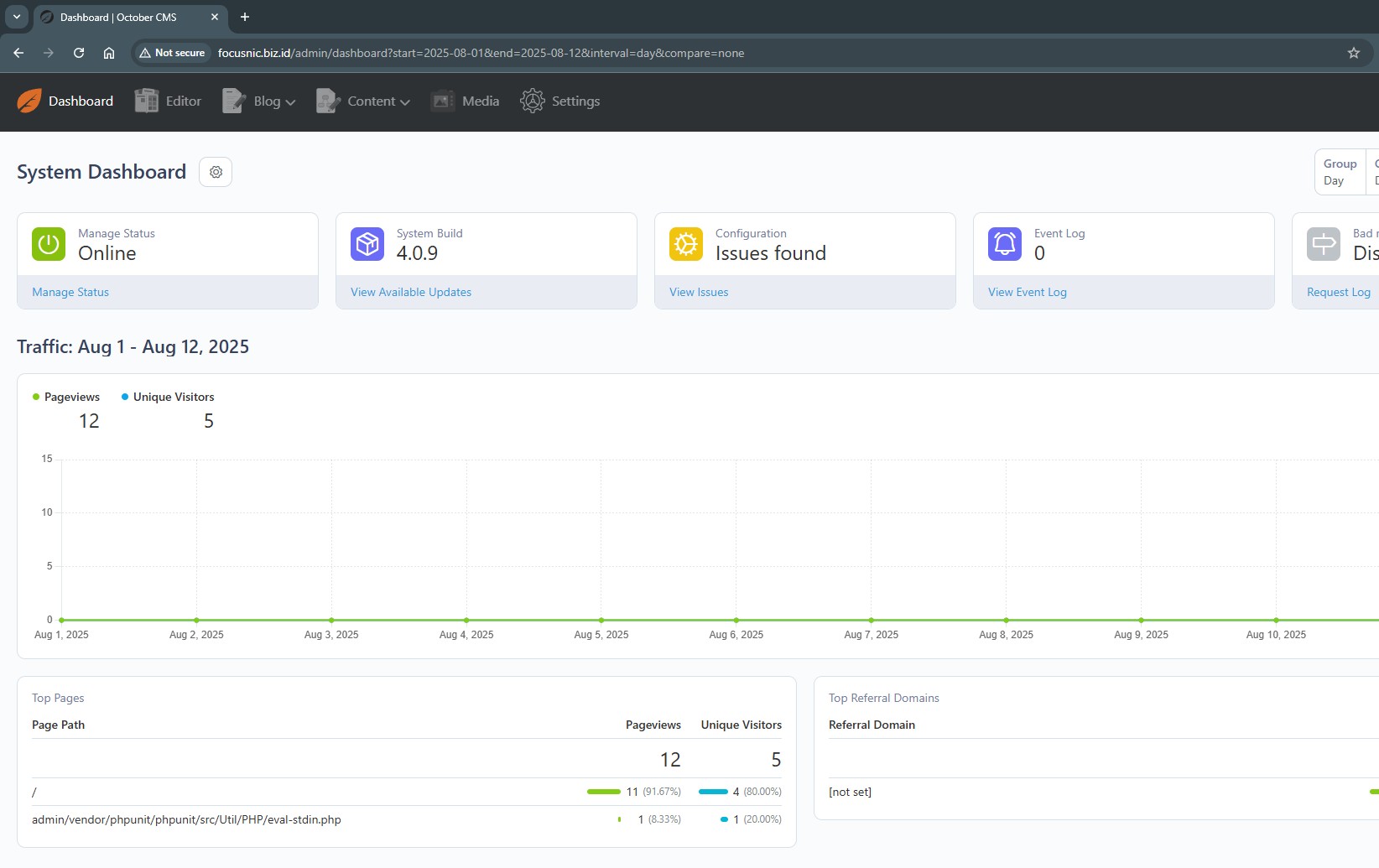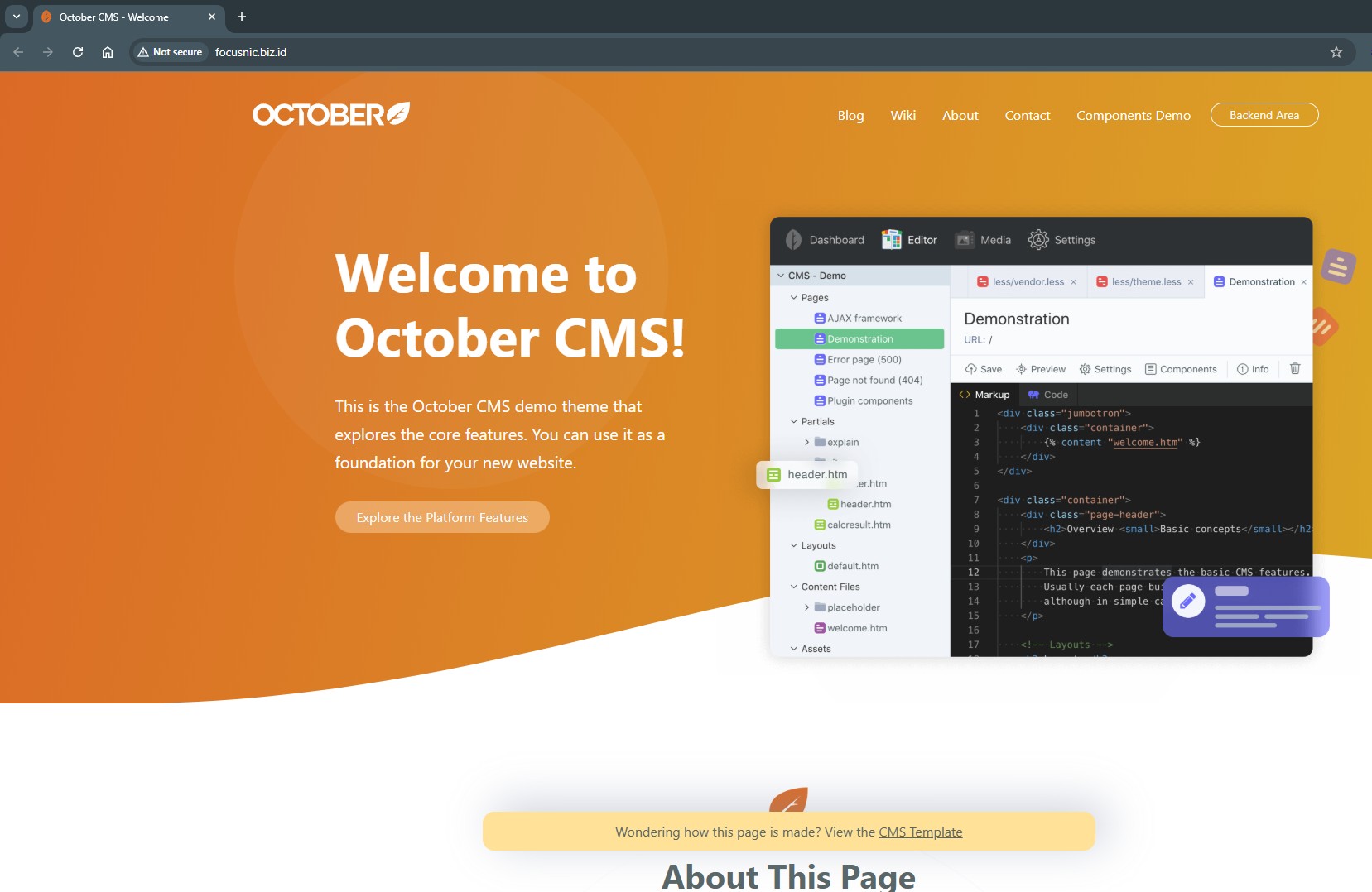 Installing October CMS on AlmaLinux 8 using the LAMP Stack is the right step to building a fast, secure, and flexible website. With the right configuration, we can achieve optimal performance. Ensure every step, from installing Apache, MariaDB, and PHP to configuring the Virtual Host, is carried out carefully.