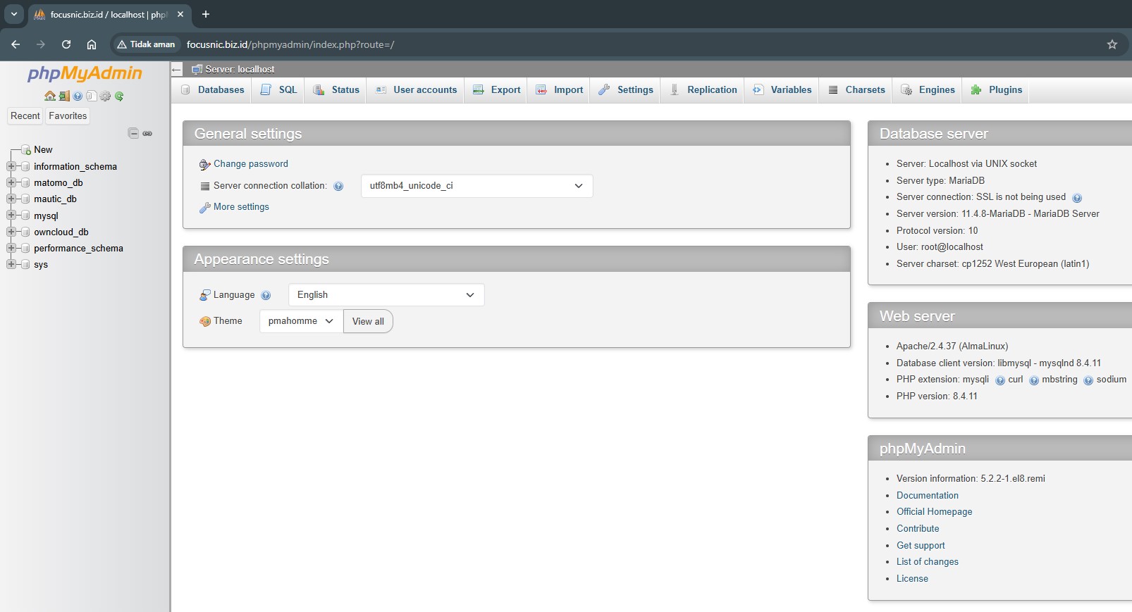 phpMyAdmin is a PHP-based application used to manage MySQL/MariaDB databases through a browser. Its advantage lies in its intuitive graphical display, so users do not need to always rely on manual SQL commands. While AlmaLinux 8 is a Linux distribution based on RHEL (Red Hat Enterprise Linux) designed for long-term stability, making it very suitable for production servers. When combined with LAMP Stack (Linux, Apache, MySQL/MariaDB, PHP), phpMyAdmin will be a very powerful tool for managing website and application databases.