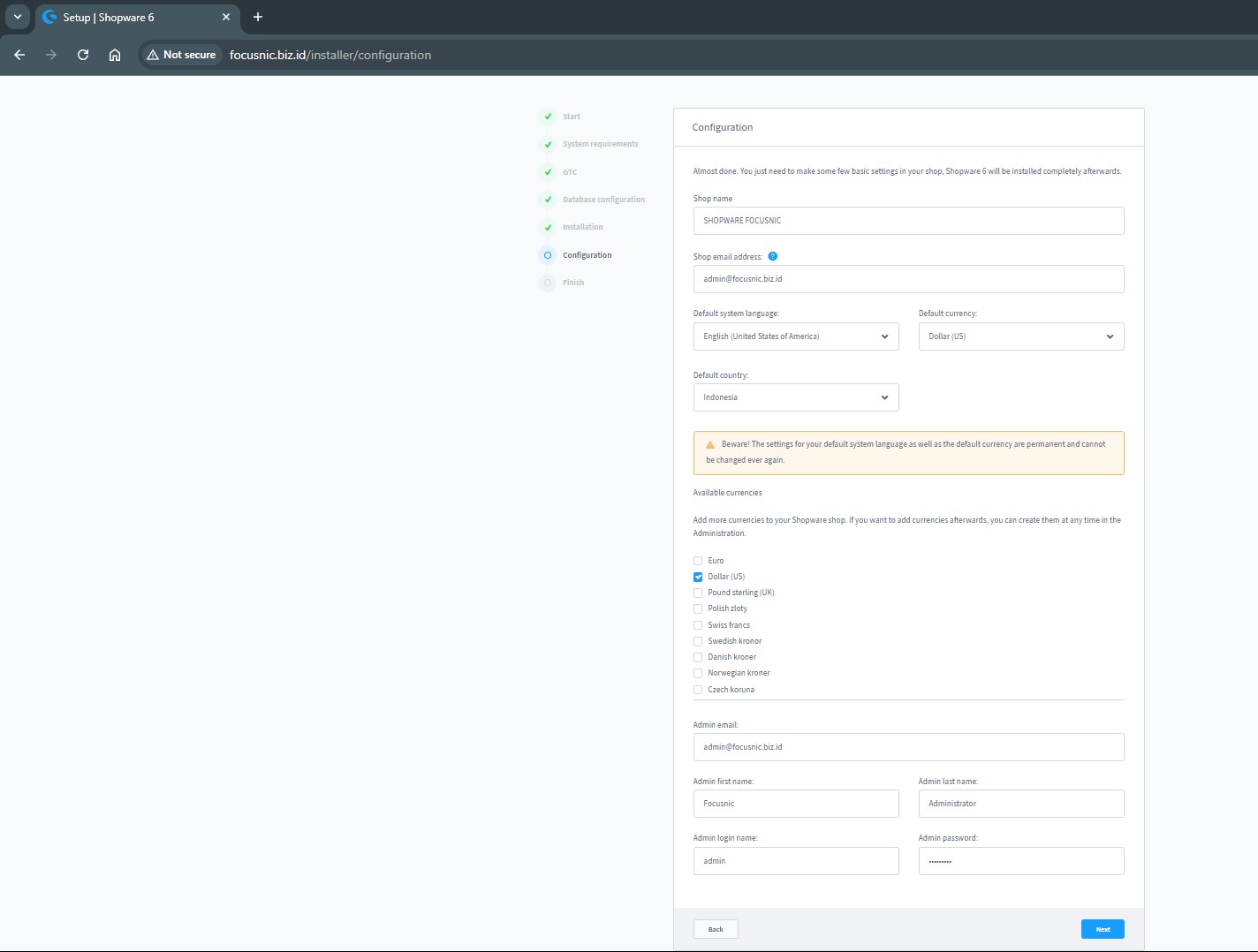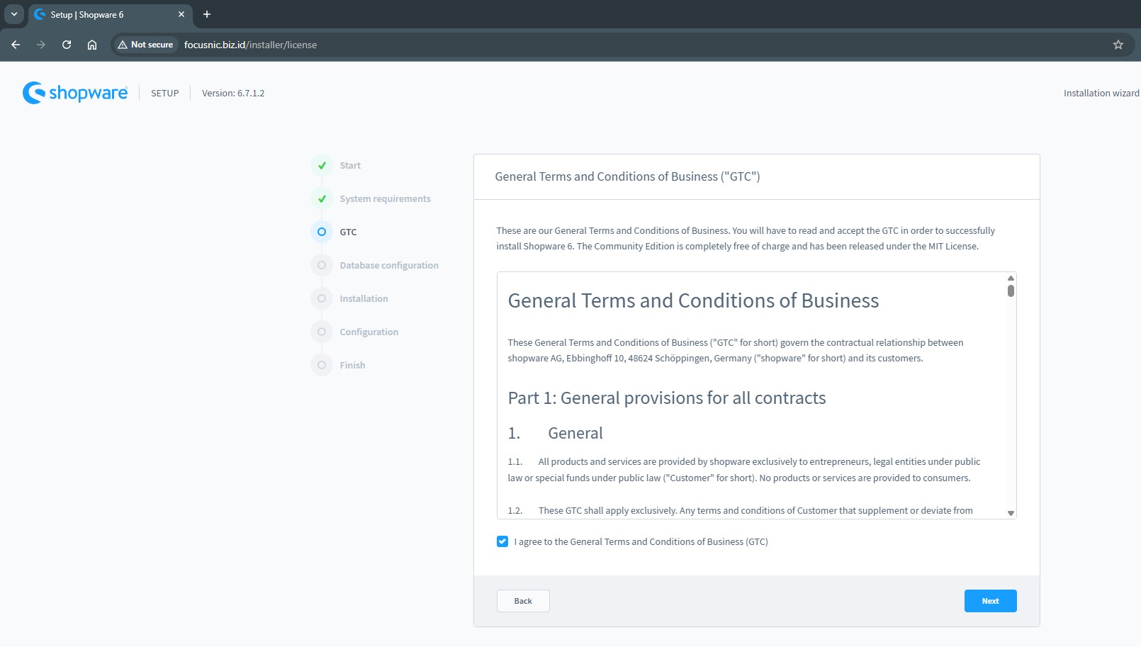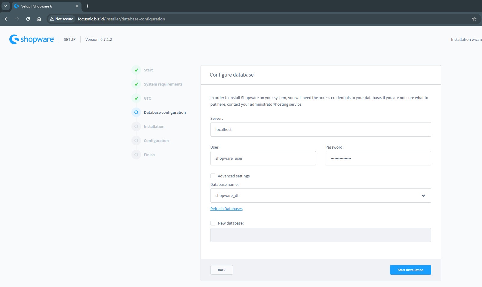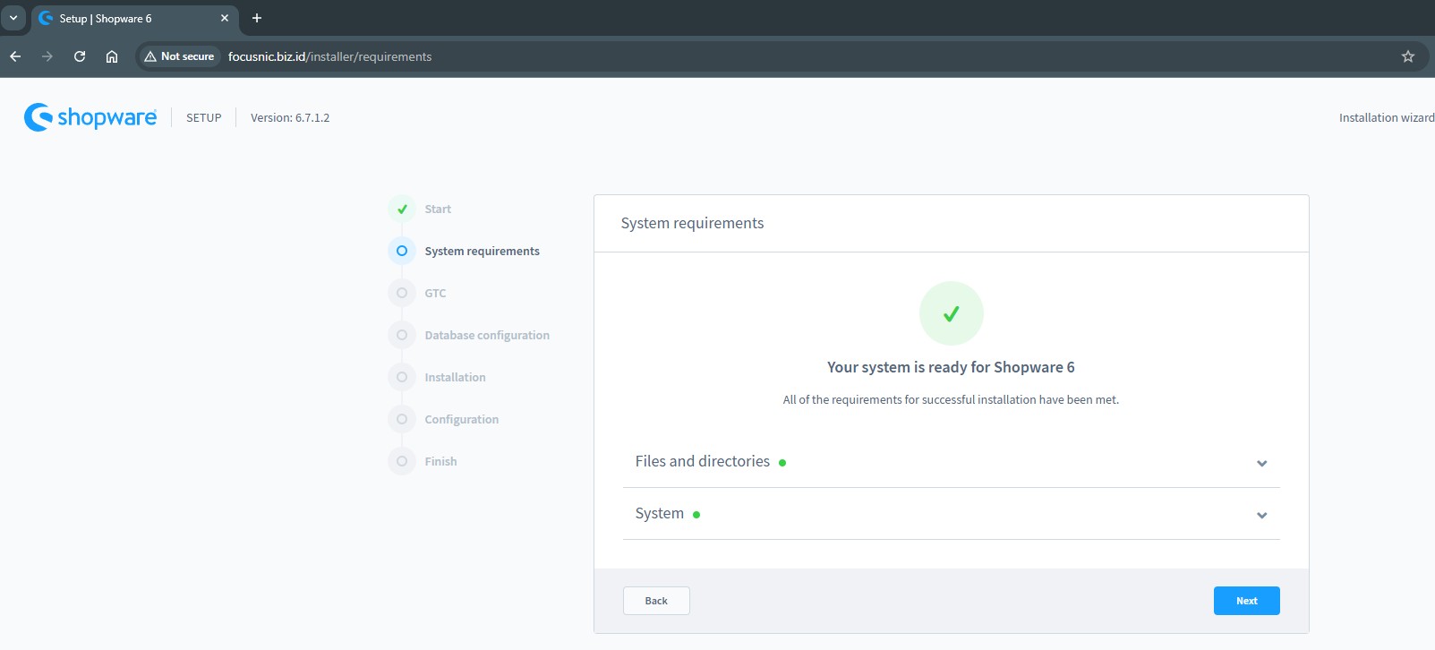 Access the Shopware installation via a browser, for example: http://focusnic.biz.id/installer