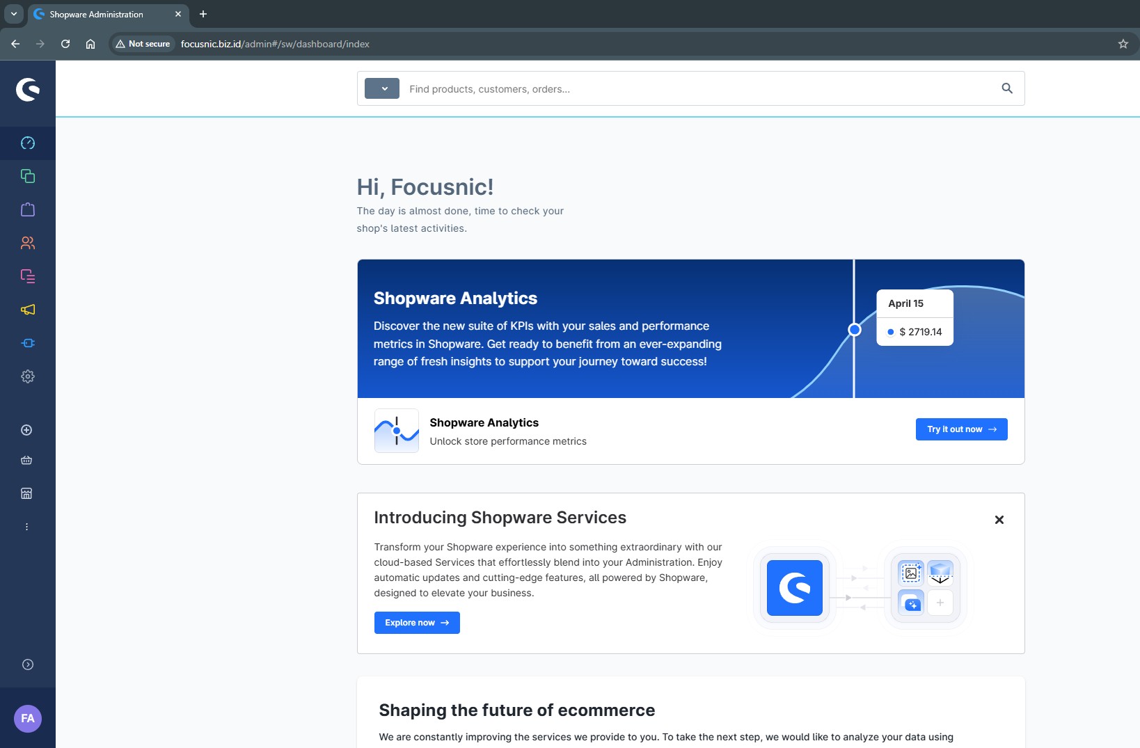 Here is the Shopware admin dashboard view via http://$DOMAIN/admin